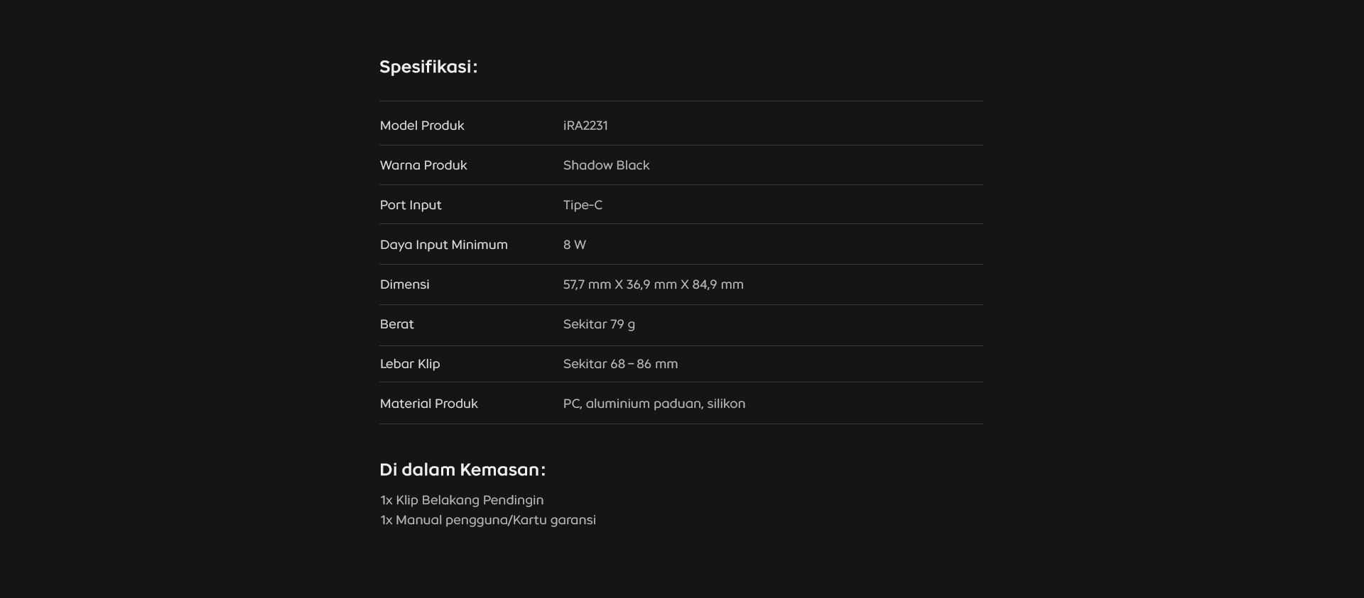 Cooling Back Clip Neo